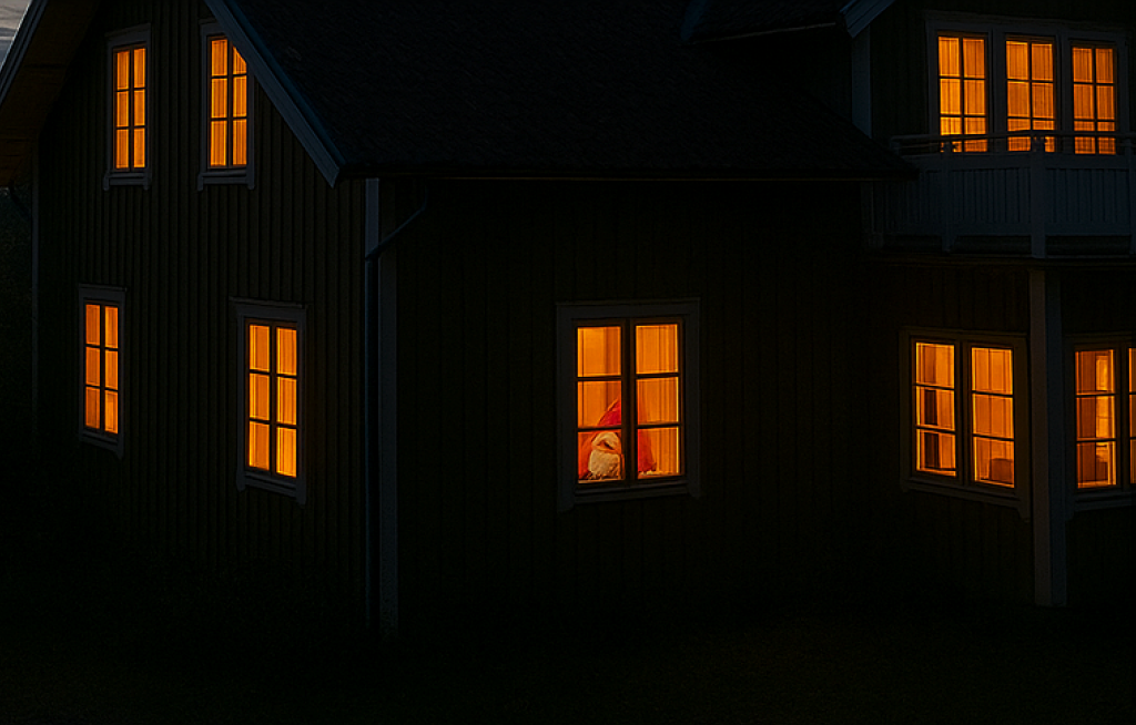 “Svensk tomte” translates to “Swedish tomte“, which can mean either a mythological household spirit or the Swedish version of Santa Claus. The original tomte is a gnome-like creature from folklore who lives on a farm, protects the animals and household, and is rewarded with a bowl of rice porridge with butter. The modern interpretation, called Jultomten, is a Santa Claus-like figure who delivers presents on Christmas Eve.