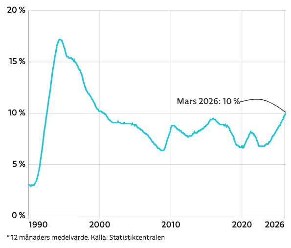 Anställda som mist jobbet *0 %5 %10 %15 %20 %010 00020 00030 00040 00019902000201020202026