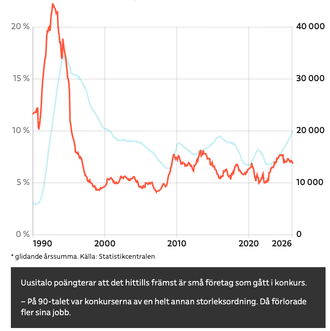 Uusitalo poängterar att det hittills främst är små företag som gått i konkurs.